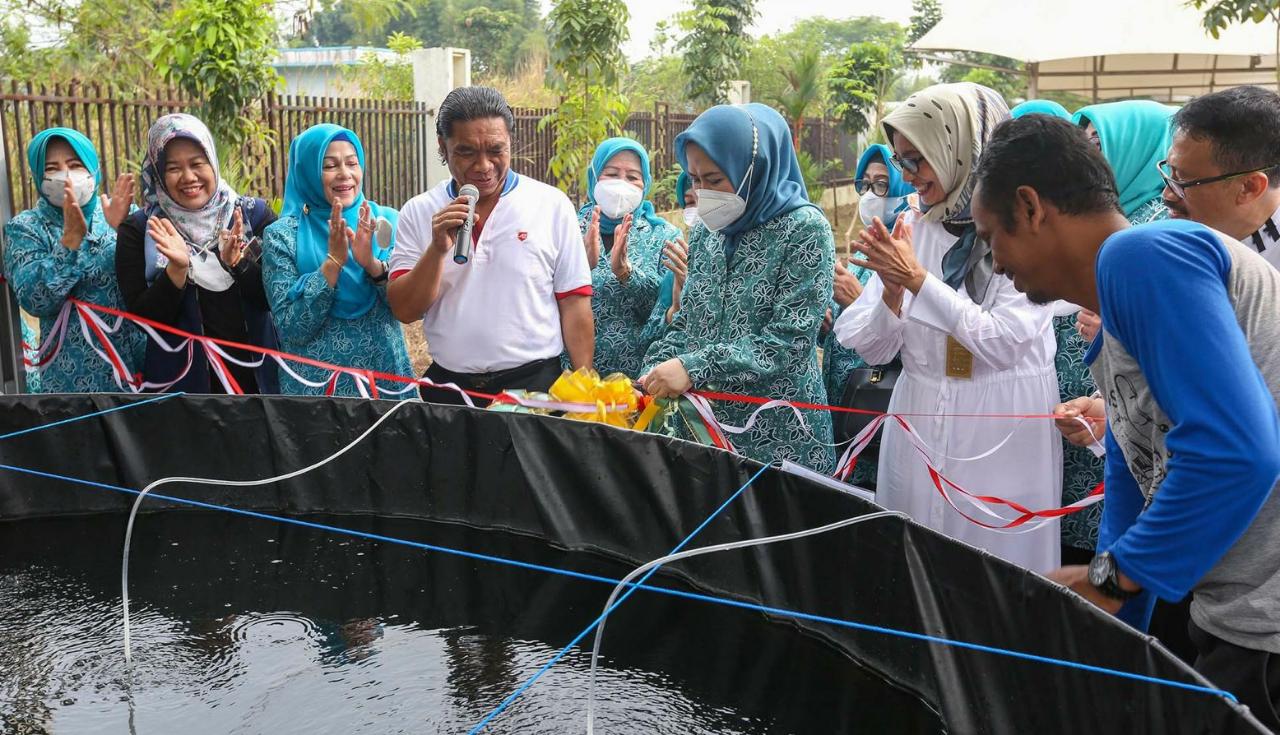 SERANG,SOROSOWAN.CO.ID – Penjabat (Pj) Gubernur Banten Al Muktabar melakukan penanaman pohon kelor dan penebaran benih ikan bersama Ketua dan Pengurus Tim Penggerak Pemberdayaan Kesejahteraan Keluarga (TP PKK) Provinsi Banten, di sekitar kantor TP PKK Provinsi Banten, KP3B Curug, Kota Serang, Jum’at (5/8/2022).