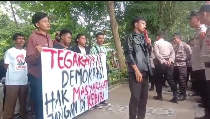 LEBAK,SOROSOWAN.CO.ID – Puluhan warga yang menamakan diri Aliansi Masyarakat Peduli Demokrasi (AMPD) menggelar unjuk rasa di depan Kantor Komisi Pemilihan Umum (KPU) Kabupaten Lebak, Senin (19/2/2024).